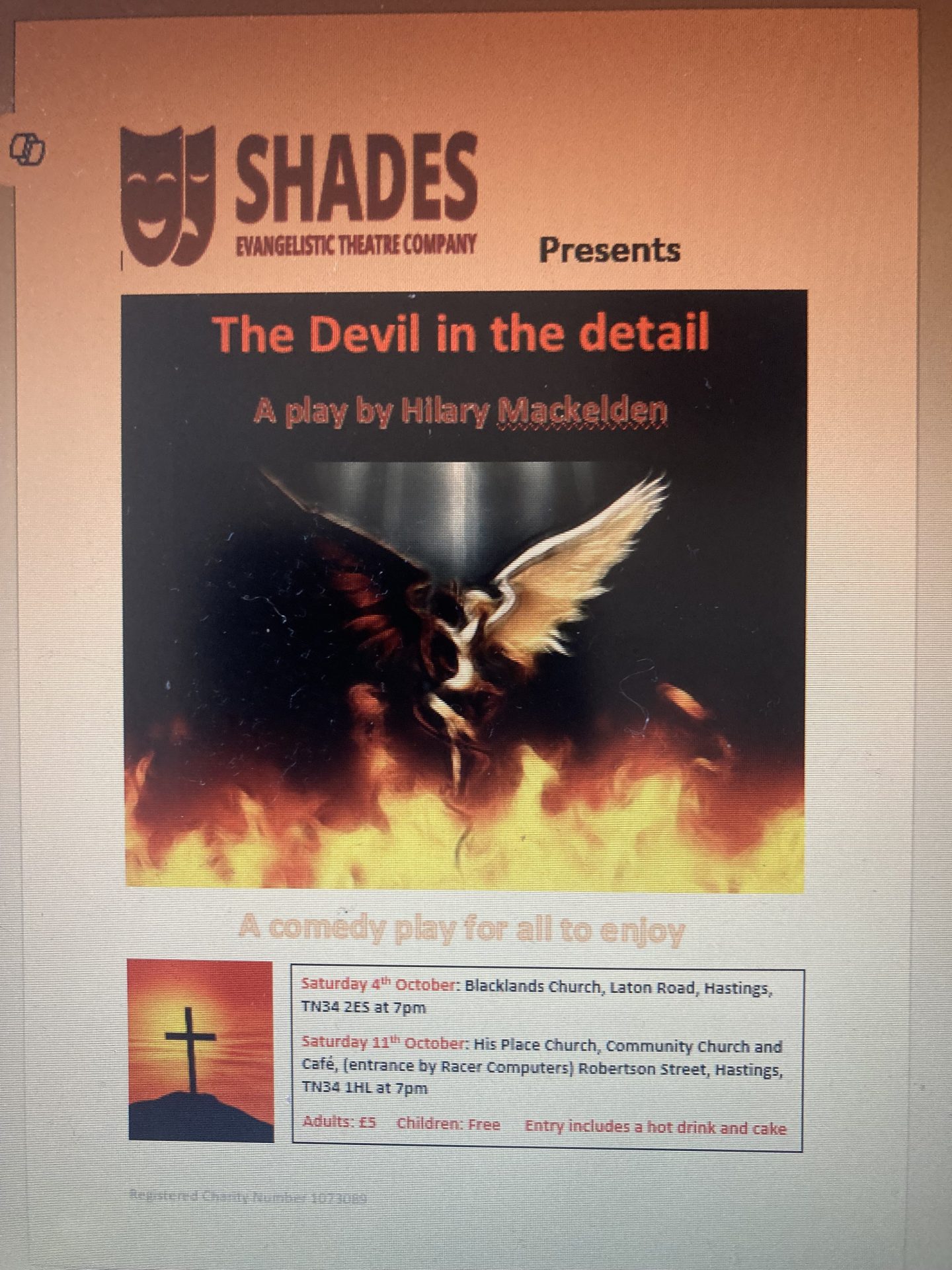 Venues Christ Church Blacklands Laton Road Hastings 6th of October and His Place Church 11th of October at 7.30.